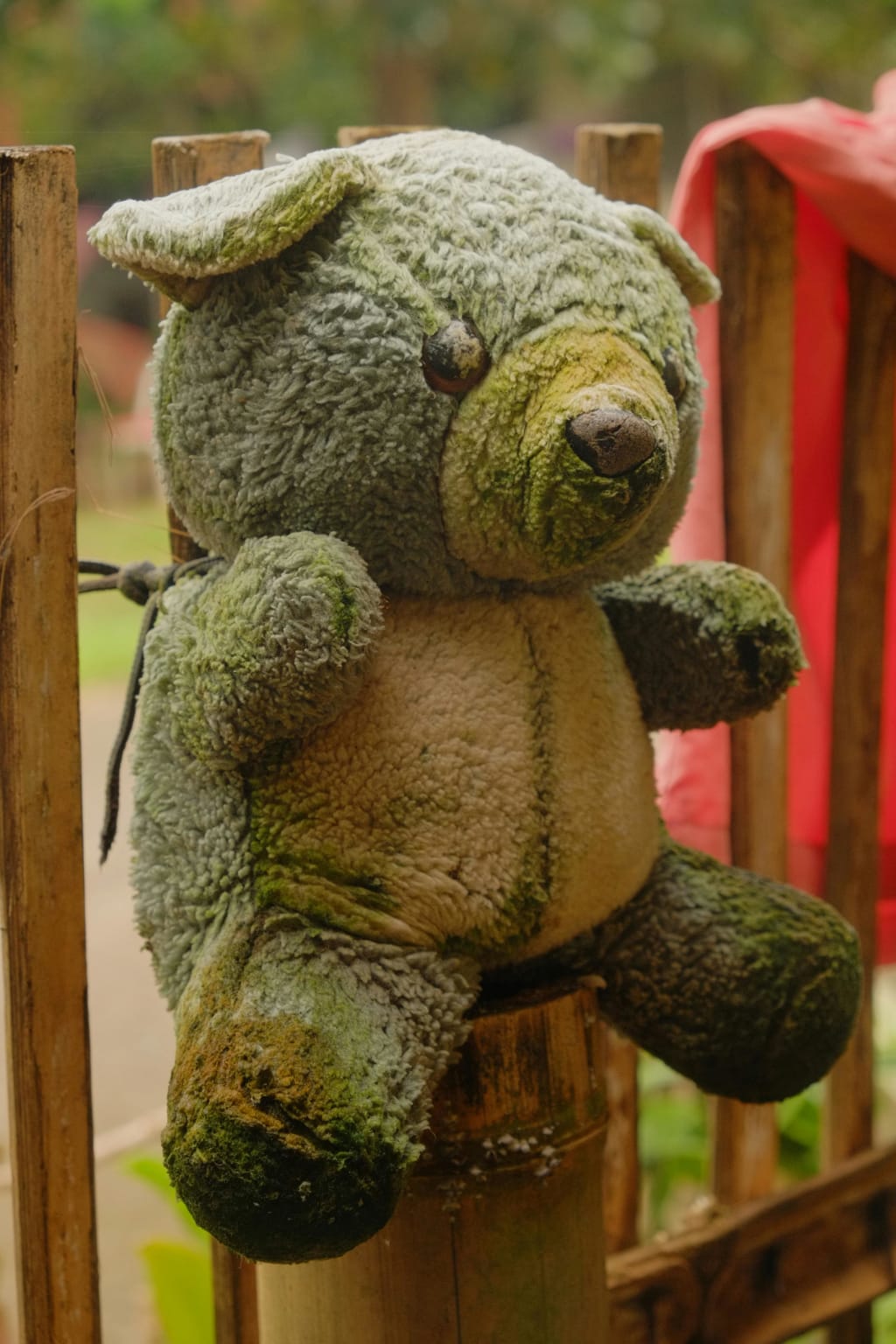 teddy bear on gatepost (pexels.com)