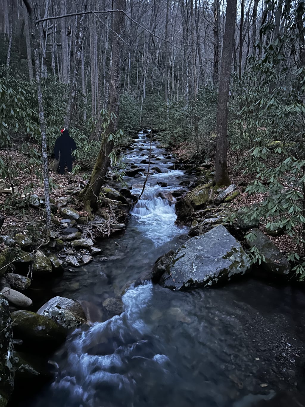 The sun fell in slanted beams across the wraparound porch, and Jim held court from his favorite rocker, twirling a lollipop between his fingers and occasionally popping it in his mouth. He’d been doing this since he stopped smoking, and the young’uns didn’t remember the cloud of Pall Mall that used to shroud his face as he told his tales. The kids were playing in the yard and under the porch, escaping the brutal shafts of September sun in the cool sand with stripes of light interrupted here and there where an adult’s frame blocked the sun from shining through the gaps between the slats of the porch floor. Presently, a grubby face appeared over Jim’s shoulder. The kids wanted to go down to the creek to play.