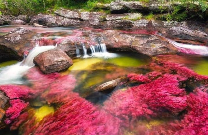 One of the most beautiful natural spectacles can be found in Colombia - the Caño Cristales river is known as the 'River of five colours' or 'the liquid rainbow' due to the fact that for several months each year the river comes alive with dazzling hues of red, pink, yellow, green and blue.