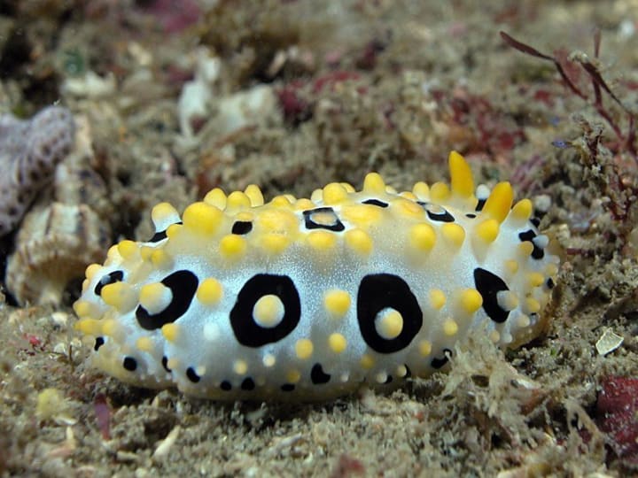 Among the shell-a species of the sea slugs is one of the most beautiful sea creatures in the world. Known as Phyllidia babai, named after the Japanese malacologist Takito Baba, this beautiful little creature is found in the waters of Lion Island, Australia, South Korea, and some other places. It has silver-colored skin with multiple black rings all over its body. It has white color tentacles as well, with grooves that are light yellow. It can reach up to 2.7 inches in length and are harmless by nature.