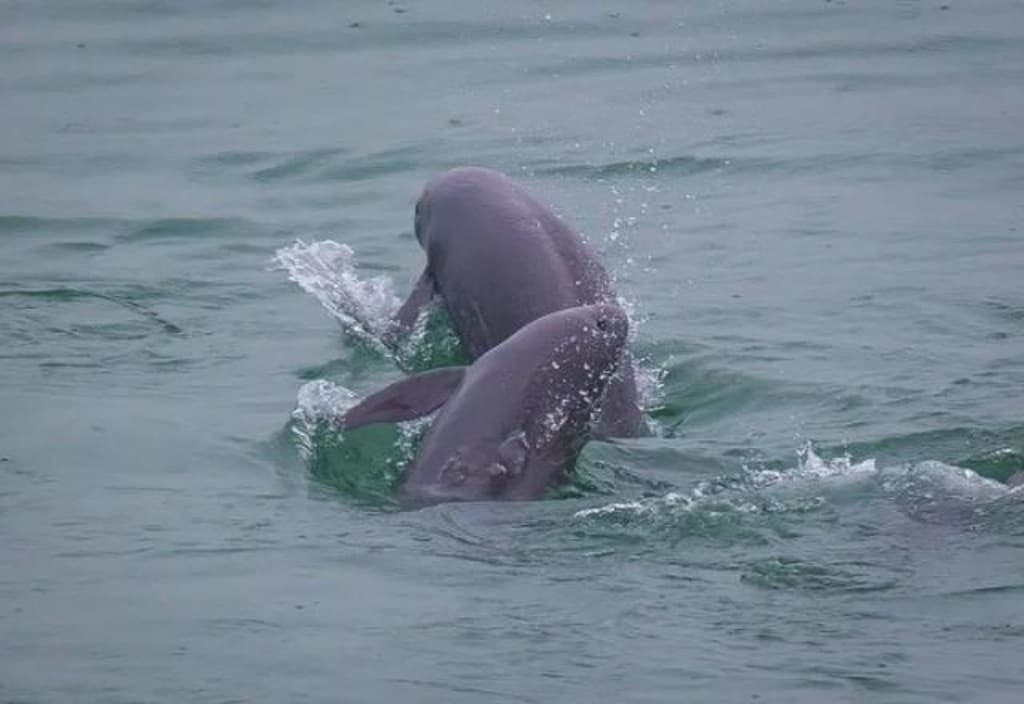 On the sixth day of the 2022 Yangtze sinless porpoise scientific research, several sinless porpoises were spotted near the mouth of Donging Lake in Changeling, Yangtze River, and at least two pairs of "mother and child" dolphins were found in the group.