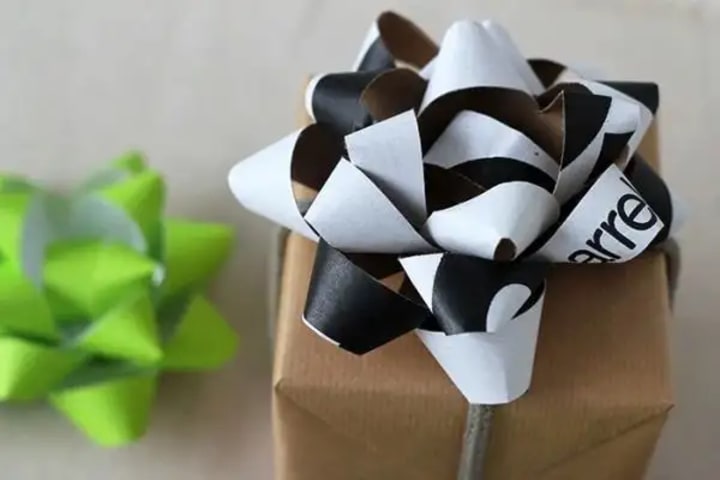 Make use of your shopping leftovers by transforming those bags into gift bows for a unique wrapping solution without the waste.