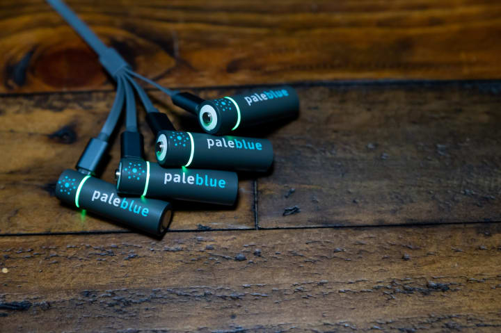 Companies are now filling the gap to solve this problem by creating batteries that are as easy to charge as your phone or other tech toys. Pale Blue is one of the leading rechargeable battery companies with easy to charge batteries that perform about the same as conventional single-use batteries. They boast on their website that a 4-pack of Pale Blue AA batteries can replace over 4,000 conventional AA batteries. That's a lot of e-waste staying out of landfills!