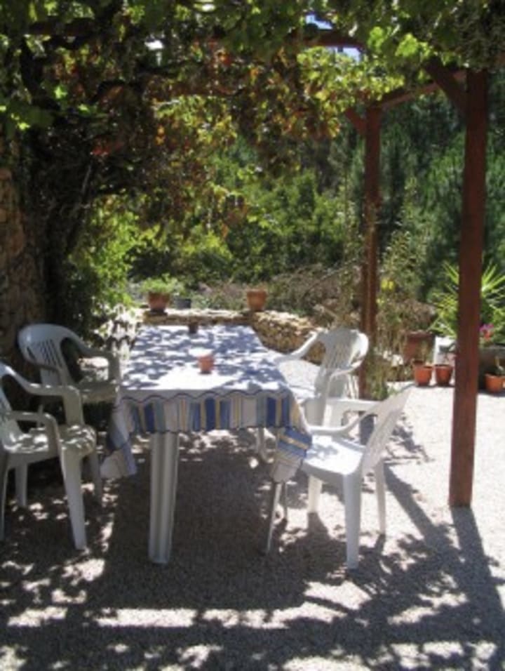 We bought Bouça Da Figueira in central Portugal almost three years ago now. We are bikers, we own a Yamaha Venture and love it!! We both have spent all our lives involved in some way with motorbikes, Rick was a custom bike and trike builder and I was editor of 100% Biker Custom Bike magazine, we decided we'd had enough of the UK weather, politics and the general idea that the loons had taken over the asylum, so we got out while we could. It wasn't easy, but we wanted peace and quiet and loads of trees!! We have our 5.000sq metres of our own land, we grow our own food, drink water from the well, make our wine and try to leave as little carbon footprint as possible. Having said that, While I'm fully prepared to work my socks off collecting wood, chopping logs, growing food, ect etc, we won't be too radical I'm afraid. I will not do without certain electrical stuff that I feel are necessities of a decent life, like the freezer ( vital to store our food surplus) and a washing machine,( vital to my sanity) although we do use the cement wash tank in the yard during summer. We do hope that soon (money permitting) Rik will build our wind turbine and we'll manage most stuff off grid. We don't have TV or internet at home, our power supply is often erratic, but we are happy with that. I also will not be having animals, apart from a few chickens in the future and the dogs. Again, we feel life should give some time for enjoyment, we work hard but do not want to be at it from dawn till dusk every day, although we want to be as green as possible, we are looking for balance in our lives . We still want to enjoy life and ride the bike!