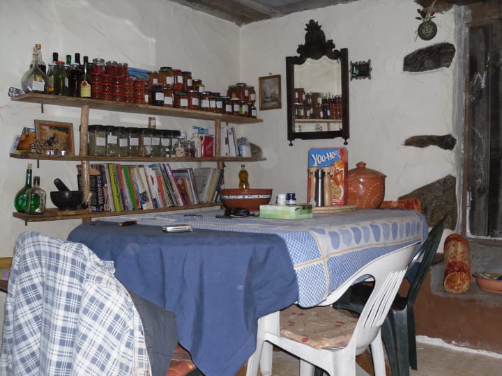 Ornaments gather too much dust, and any kind of clutter really just doesn't last long with me unless its useful clutter ..Our clothes are a general rag bag of worn out things, I never throw clothes away until they turn to dust. Everything can always be mended, my challenge Is just getting Rick to agree to wear them... We keep a couple of sets of goodish clothes to wear when we go out to town and that's about it. The rest is mended and darned to hell, but if it's warm and comfy who cares. We live such a simple life, good homegrown organic food, mainly veg and pulses, we drink our well water and our own organic wine, we have our own home produced cold pressed extra virgin olive oil. Add to that a little pasta, rice and now and again a small amount of meat and we have the most wonderful meals.