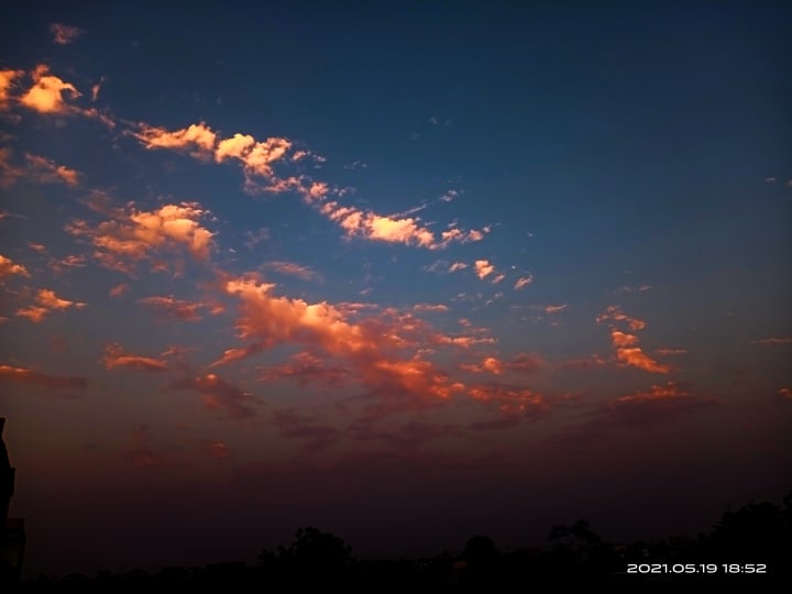 The sky today was a breathtaking display of cotton candy clouds against a backdrop of deep blue. I spent the afternoon lying on a soft patch of grass, allowing myself to be transported by the gentle breeze. As I gazed upwards, I noticed a flock of birds soaring gracefully, their wings silhouetted against the setting sun. It reminded me of the freedom that exists beyond the boundaries of our earthly existence. The sun began its descent, casting a warm and gentle glow upon the world. As the evening painted the horizon, the sky transformed into a breathtaking tapestry of colors, resembling a cotton candy delight.