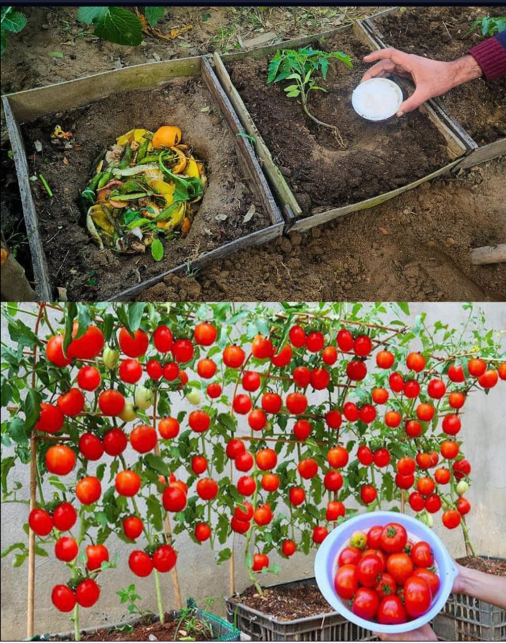 It is worth mentioning you should not add cooked food, dairy or meat because they can attract pests and release unpleasant odors. Only add plant based kitchen waste this will nourish your tomatoes in a lasting way and won't attract other problems.