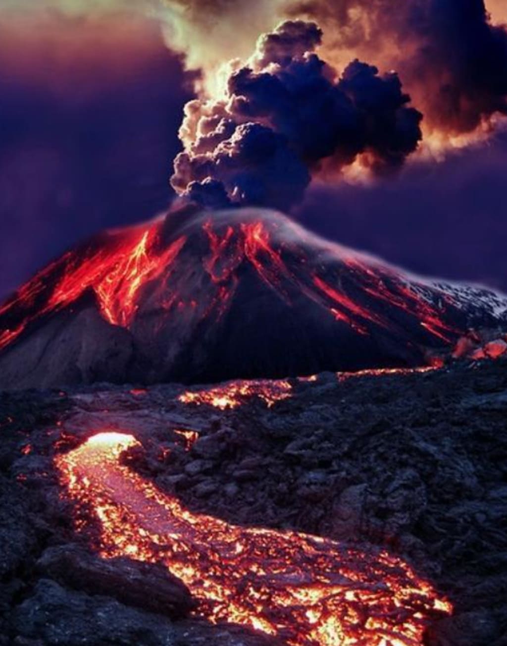 A nighttime eruption of Mount Etna in Sicily, Italy. The ejected lava was almost 100 metres high and the ash column was almost 5000 metres high. The eruption continued throughout the night and did not end until the morning of the 14th. People in a small village near Mount Etna woke up in the morning and began to clean up the volcanic rock from the eruption. Experts say the eruption was relatively mild, although it lasted.