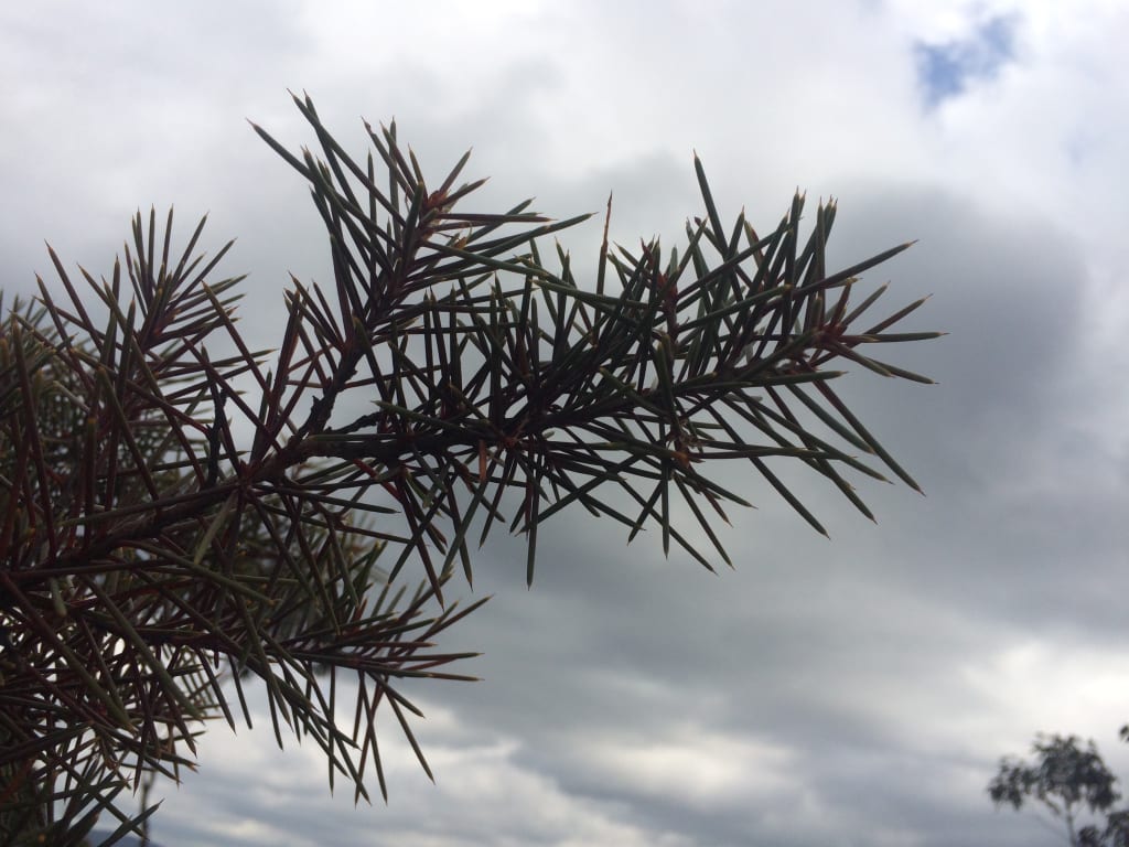 Heavy wind brings with it stories from far-away lands, coming to me with scents of fire and smoke, with the sweet pollen gifted by spiky Lomandra flowers, with the hum of an otherworldly being or with the unique vibration of life being lived elsewhere. He has settled down now, as I swing gently on my hammock, at the close of an unsettled day.