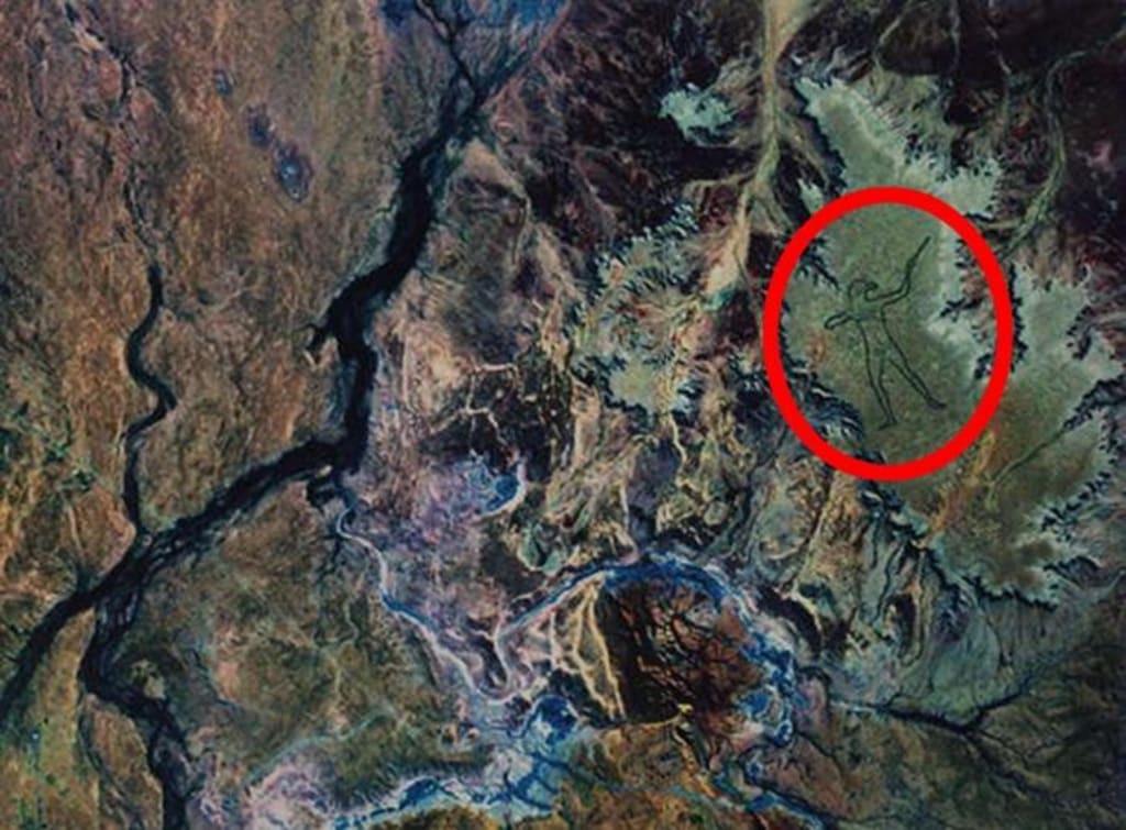 If you fly over the southern part of Australia, you will see a giant human figure in the flat open space in the middle of the "Tennis Springs" hilly terrain 56 kilometers west of the small town of Mare, in south Australia.