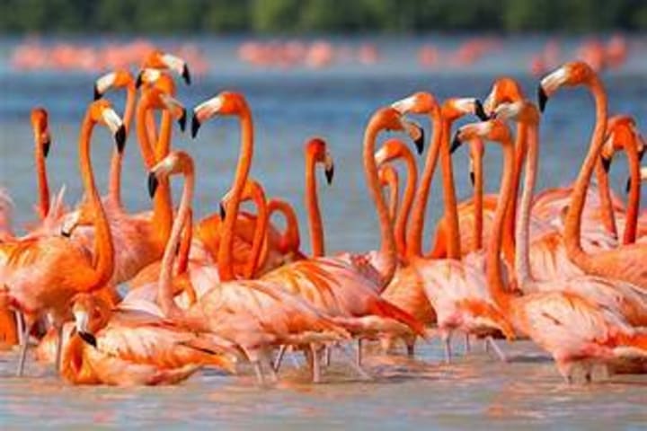 Caribbean flamingos are known for their striking pink plumage acquired by their diet of algae and small crustaceans. They are a celebrated symbol of Caribbean wildlife. Caribbean flamingos are highly social and often live in large colonies, where they engage in various social interactions, including bickering and squabbling. They thrive in lagoons, estuaries, and coastal wetlands, where they use their unique bills to filter food from the water.