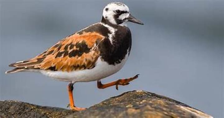 Birds with an unusual name, ruddy turnstones, are known for their chestnut and black plumage and orange legs. They inhabit the coastlines. These adept medium-sized shorebirds know how to flip rocks and shells to uncover food.