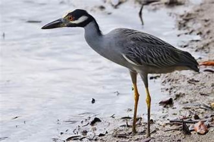 Yellow-crowned night herons inhabit the coastal regions of the Caribbean. They have gray bodies, yellow legs, and red eyes. These birds love to fish for crabs and fish. It is their presence that maintains the balance of aquatic life.