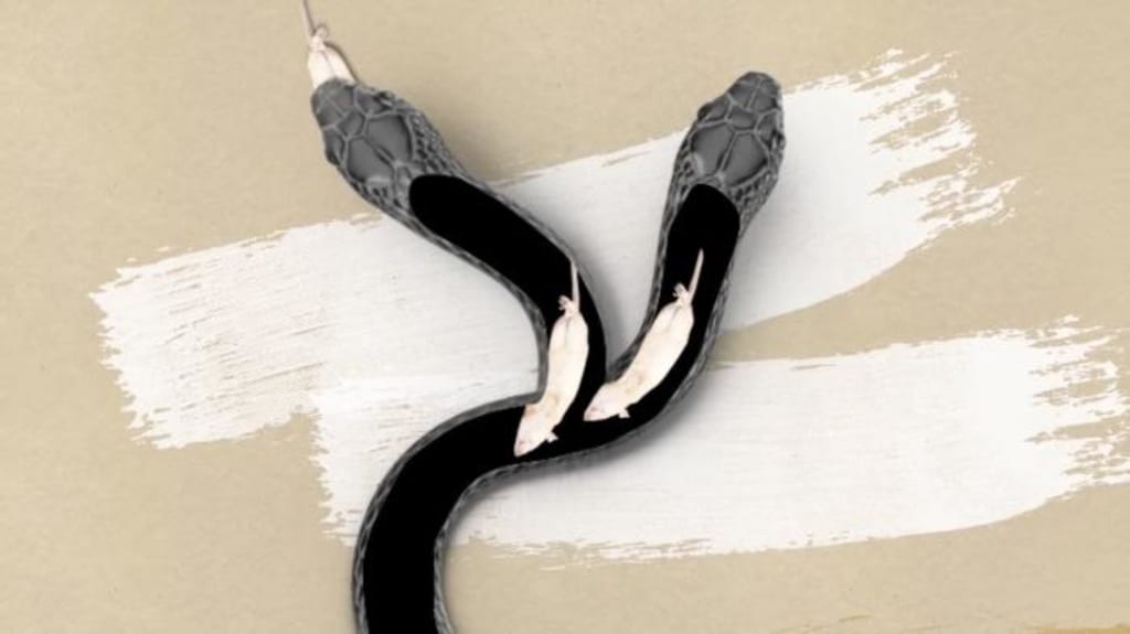 In the two-headed snake group, some two-headed snakes only share a stomach, two snake heads at the same time in eating, not only easy to choke but also the stomach is unable to accommodate more food and even the risk of death. At this point, someone may say, "Since we can't eat at the same time, what about letting one head eat food first and then letting the other head eat after a while?"