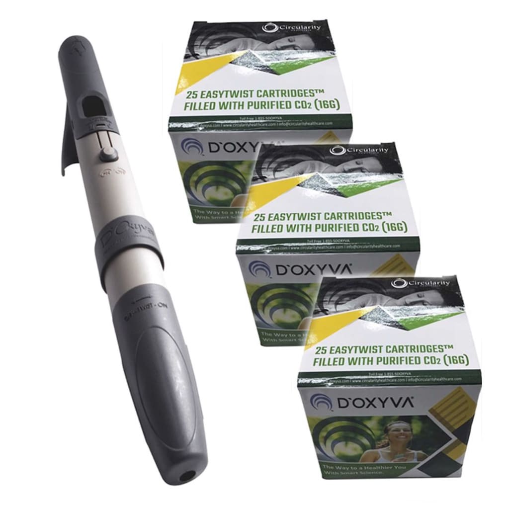 The pioneering D’OXYVA uses a unique skin microcirculation technology, dispensing a non-toxic vapor through a mini cartridge filled with ultra-purified CO2 molecules.