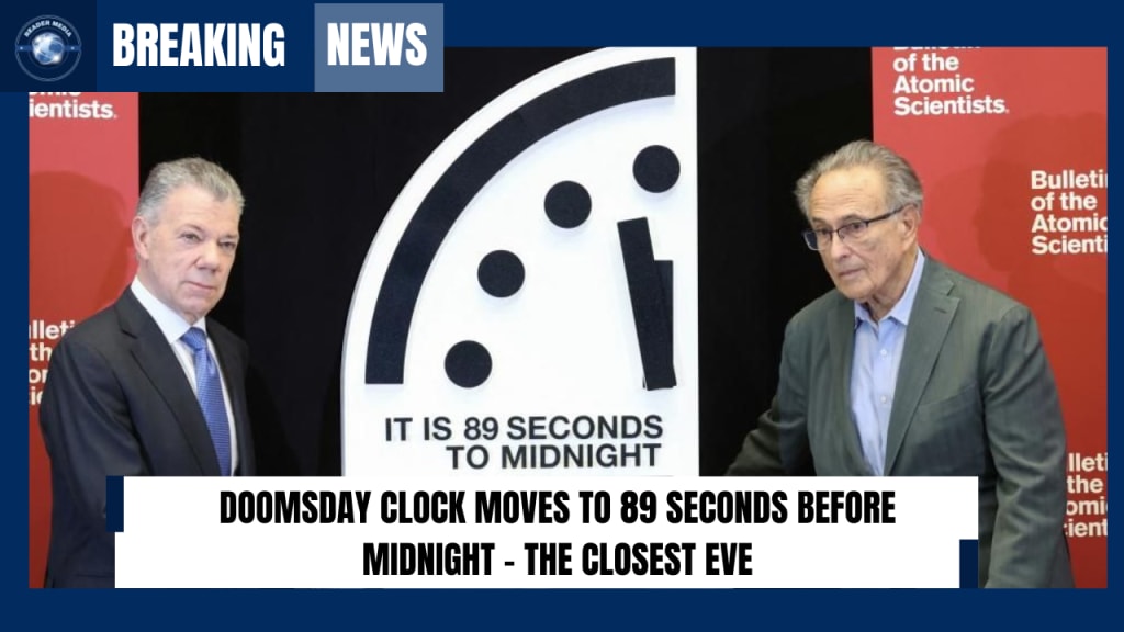 The Doomsday Clock, a symbolic representation of how close humanity is to global catastrophe, has moved forward by one second, now standing at 89 seconds to midnight. This is the closest it has ever been to symbolic destruction, reflecting the increasing threats facing the world today.