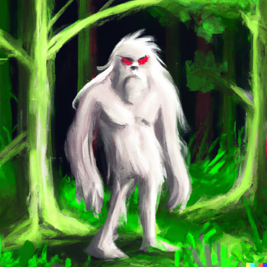 Most reports agree that it is covered with snow-white hair and has glowing red eyes. Some describe the beast as standing approximately eight feet tall on two legs, and appears ape-like, while others say it looks like a white lion or a kangaroo with a cat’s head. Some witnesses have also said that it didn’t have any visible eyes or ears. A possible explanation for the varying descriptions is that some believe that the beast can shape-shift into different forms.
