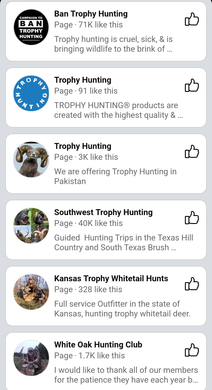 Even though Facebook also allows groups and pages that oppose trophy hunting on their platform, it is good to also note that these groups would not need to exist, to begin with, were it not for the existence of the groups and activities that promote trophy hunting.