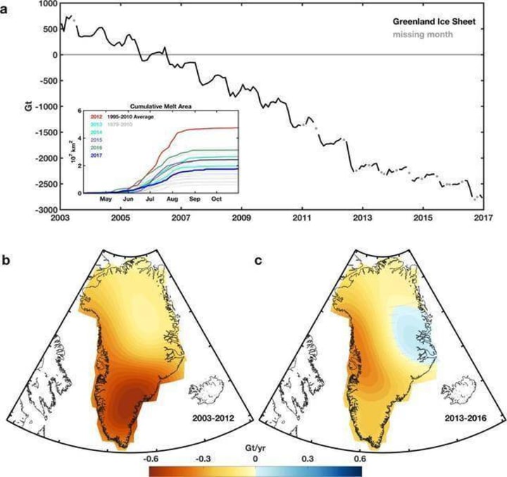 Since 1980, the climate in the Greenland region has been on the rise and is warming about 1.5 degrees per decade, four times faster than the global warming rate, with temperatures more likely to exceed the melting threshold.