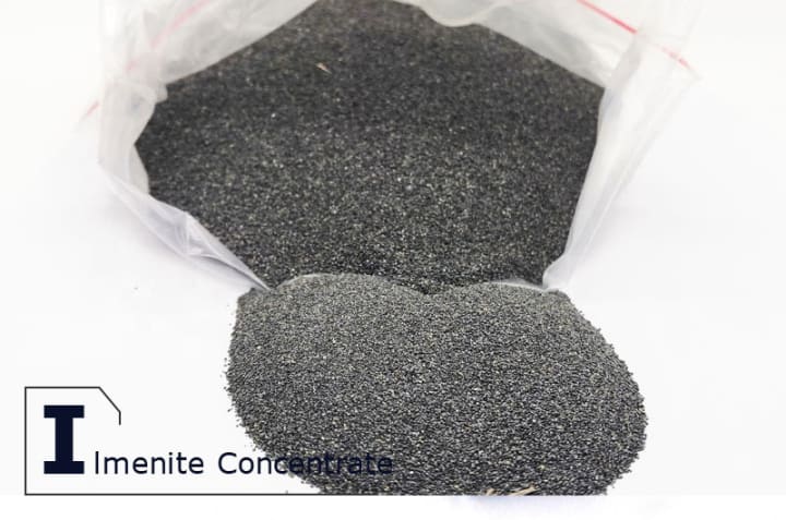 Ilmenite is a black iron-titanium oxide (FeTiO3) with the main mineral components of hematite, magnetite, pyrite, pyroxene, and amphibole. Ilmenite in placer deposits often contains a large amount of slime.