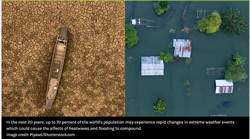 In the next 20 years, 70% of the world's population may be affected by increases in extreme weather.