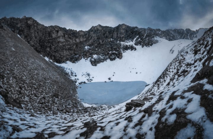 In the Himalayas under the northern remote areas of India, hiding a glacial lake only one-seventh the size of the court, called Lupkon Lake, Lupkon Lake is irregularly round, only less than 40 meters in diameter, the deepest place is only 3 meters. The lake is in a frozen state most of the year, only in the spring and summer, there will be a few weeks of brief melting, this time the clear bottom of the lake will emerge a large number of skeletons, these skeletons do not belong to any animal, all are human skeletons, Lupu Kang Lake then fame, known as the skeleton lake.