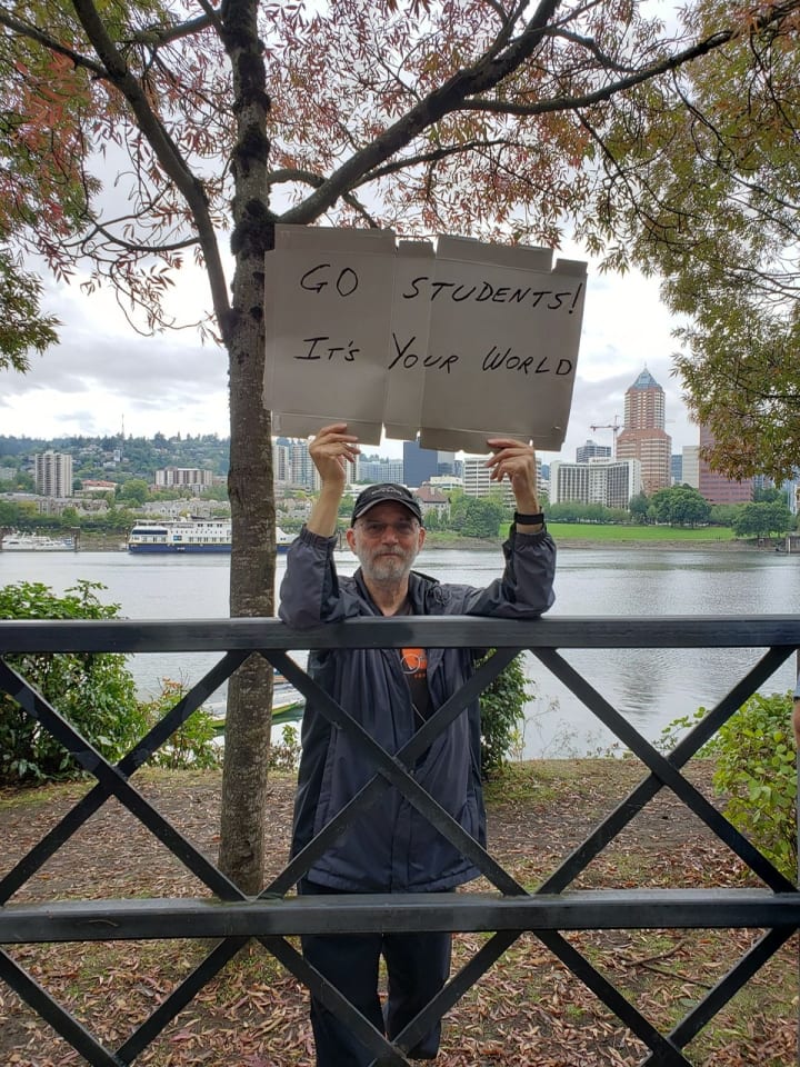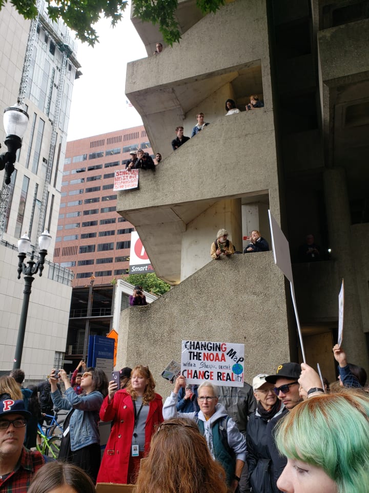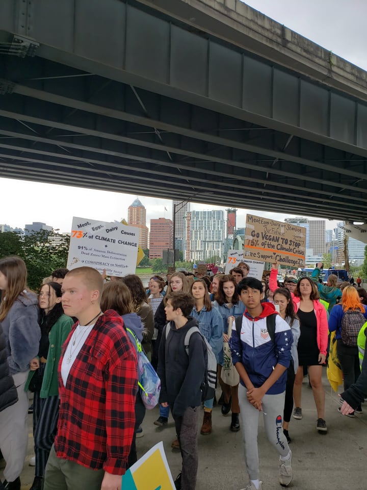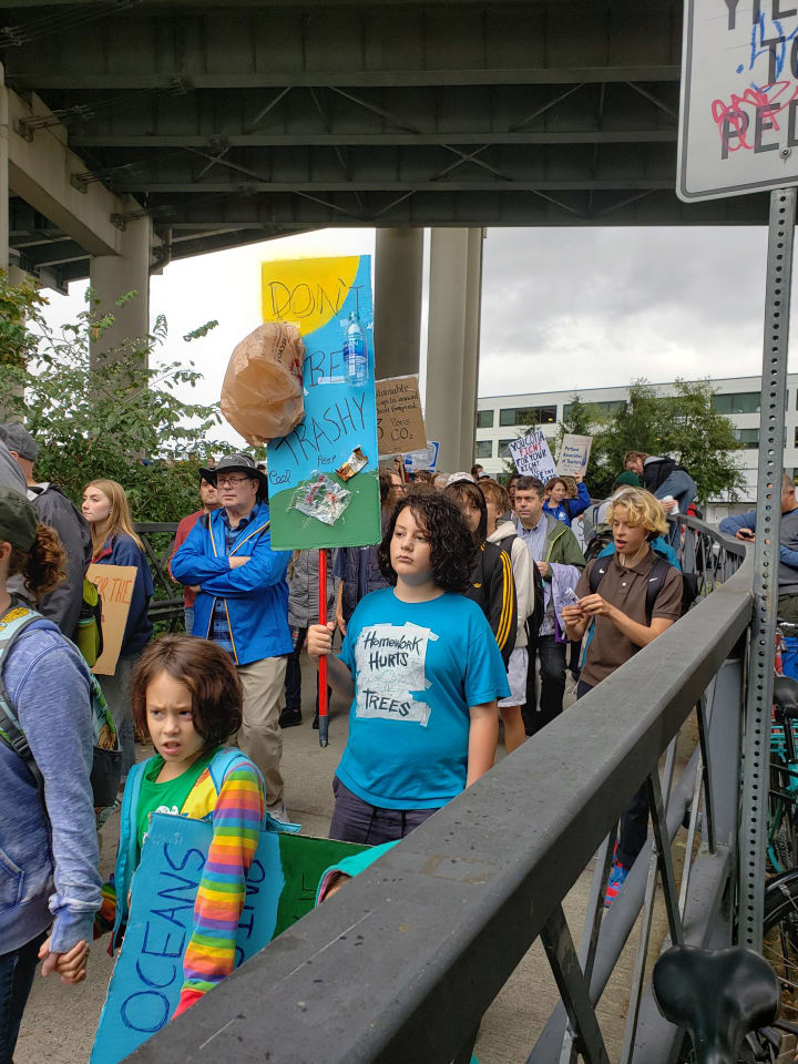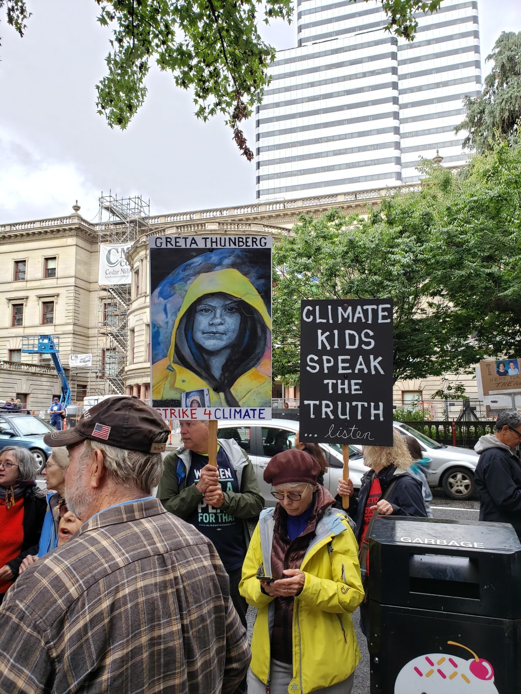 Like the April 2017 March for Science in Seattle, it was overcast and raining that September 2019 day in Portland, although the rain was less intense and a bit more intermittent. I decided to use my work phone for its higher quality camera, partly because I was paranoid about having my personal phone tracked through any photos or video clips I took during the strike. (In hindsight, using my work phone may have been equally problematic from a privacy and security standpoint, even though I deleted the actual photos from my work phone's built-in photos storage immediately after they were all uploaded to Google Photos. But that's a story for another day.) At any rate, I'm glad I went out to volunteer with th event and vibe with the participants- who ranged from elementary school students to jovially raging grannies who seem to tag along at marches and protests in Portland. I even saw two people that I haven't seen since high school in the crowd, although I have no idea if they saw me in my hoodie and fluorescent yellow-green volunteer vest.