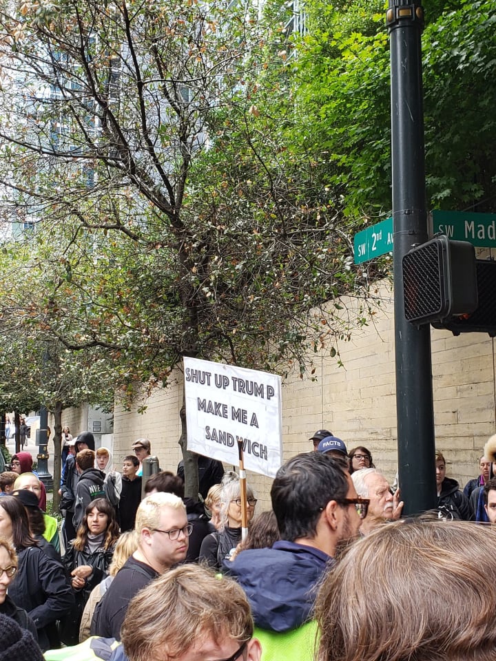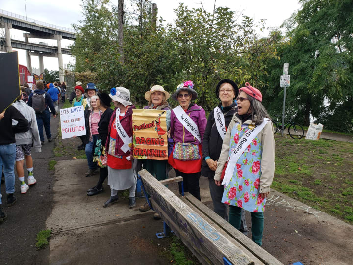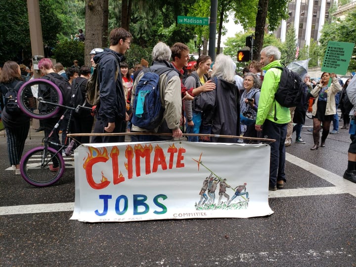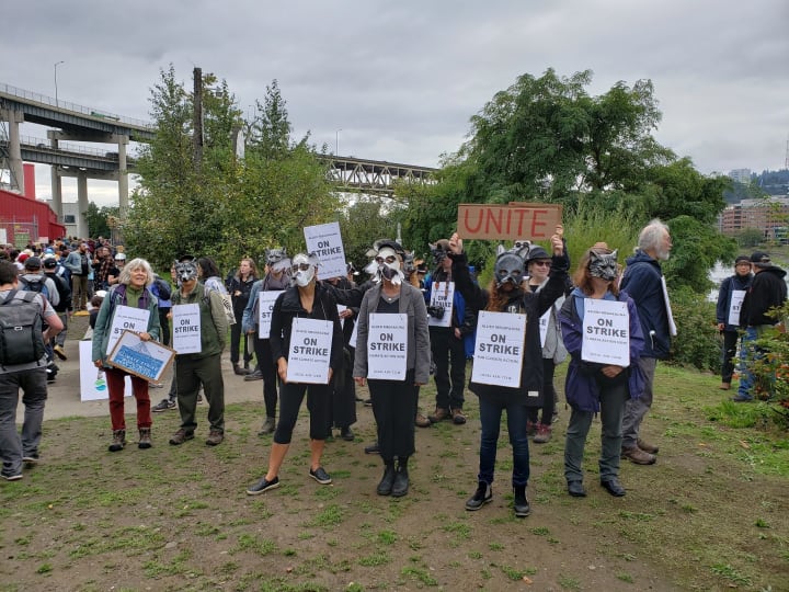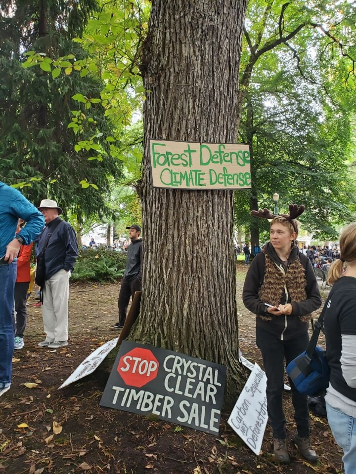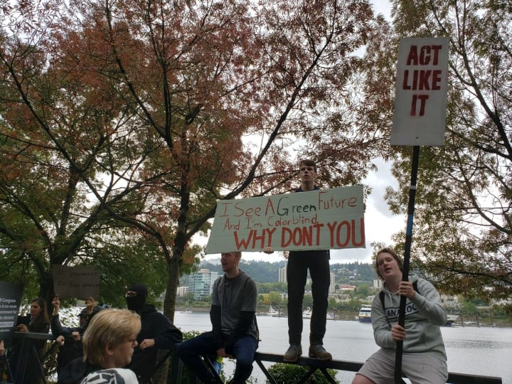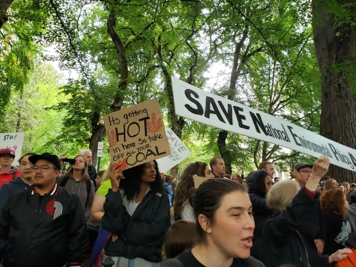 Like the April 2017 March for Science in Seattle, it was overcast and raining that September 2019 day in Portland, although the rain was less intense and a bit more intermittent. I decided to use my work phone for its higher quality camera, partly because I was paranoid about having my personal phone tracked through any photos or video clips I took during the strike. (In hindsight, using my work phone may have been equally problematic from a privacy and security standpoint, even though I deleted the actual photos from my work phone's built-in photos storage immediately after they were all uploaded to Google Photos. But that's a story for another day.) At any rate, I'm glad I went out to volunteer with th event and vibe with the participants- who ranged from elementary school students to jovially raging grannies who seem to tag along at marches and protests in Portland. I even saw two people that I haven't seen since high school in the crowd, although I have no idea if they saw me in my hoodie and fluorescent yellow-green volunteer vest.