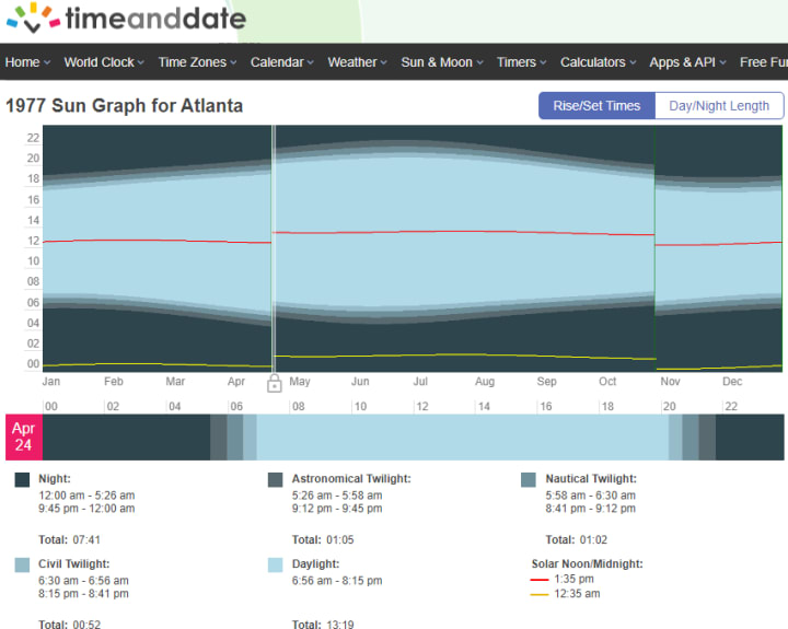 In addition to photos of the sunrise and sunset graphs that calculates clock change placement shown above, here is a rundown on the different clock change rules over the past 108 years: