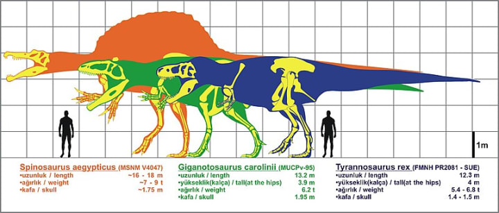 In their “Nature” paper, Coria and Salgado concluded Giganotosaurus was the largest theropod ever recorded from the Southern hemisphere, and that it was probably the world’s biggest predatory dinosaur. The fossil they investigated was up to 41 feet long head to tail. It was estimated that the Giganotosaurus example weighed between 6.6 and 8.8 tons.