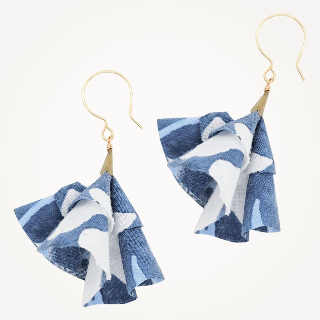 Our limited-edition, zero-waste jewelry line has a piece for every type of customer. The leftover fabrics are all unique which gives each piece its own personality. The colors of the collection are neutral yet vibrant at the same time. I relied on Bell’s expertise to create unique, handcrafted designs. The collection includes tassel pieces, bigger statement pieces and a few others. As a bonus, the fabric is light so the statement pieces are comfortable, which was a unique and fun challenge for my friend who usually works with stones and metal!