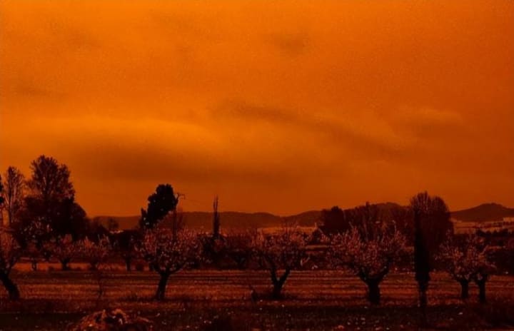 Since March 15, strong winds have been blowing in the African Sahara Desert, and violent dust storms have not only hit Spain, Portugal, France, Switzerland, and other places but even spread to the more northerly United Kingdom. Many European cities throughout the sky turned orange or even blood, as if in the science fiction film Mars, buildings, roads, and vehicles were covered with sand and dust, and the air was seriously polluted, filled with the smell of sand and dust. At a ski resort in France, the snow-white snow field turned into "dirt slopes". The mountains near Madrid, Spain, white snow with a red tinge.