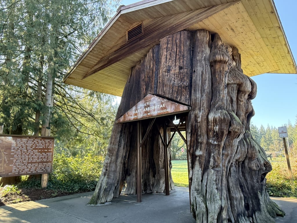 You stand as a monument to the logged-off forests of old-giant trees that once covered the land. Now you rest beside a major highway at a rest stop, with a sign detailing the written history of your life. Birds still nest in your stump, and you'd be happy to know tens of thousands (probably more) photos of you exist, with people appearing the size of ants compared to you. You give home to insects, shade and shelter to birds, and jaw-dropping amazement to children and parents.