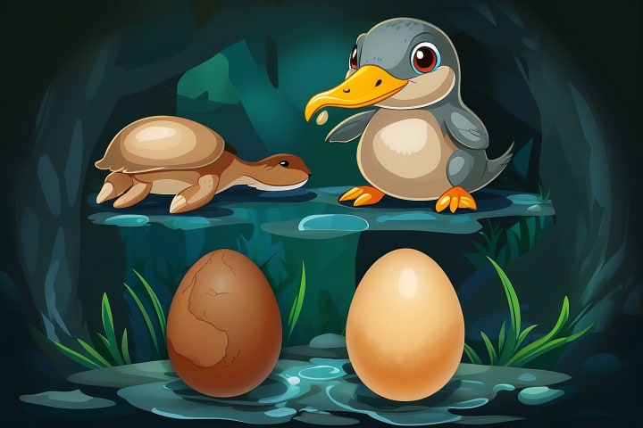 Female platypuses lay eggs and incubate them in burrows. The young are nursed with milk secreted through the mother's mammary gland ducts.