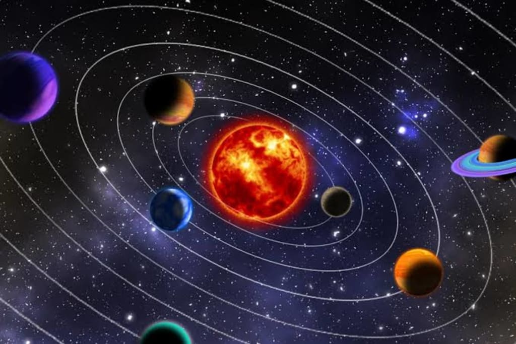 The planets in the solar system are arranged in orbits around the sun, which is held in place by the force of gravity. The inner planets have short orbits and take less time to complete a single orbit around the sun than the outer planets, which have longer orbits.