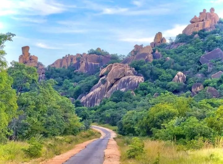 The Matopos National Park is just outside of Bulawayo and is a beautiful park of balancing boulders, animals, San Bushman cave paintings and serene landscape of savanna grassland and dense forested bush.