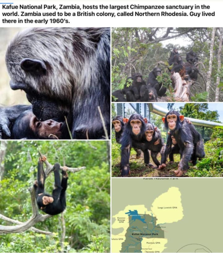 Zambia was once a British colony called Northern Rhodesia. I lived in a town called Broken Hill. After independence, the name was changed to Kabwe. It is in the middle of the copper belt. Zambia has one of the biggest deposits of copper in the world. There is also large game reserves scattered around Zambia. The one close to the capital, Lusaka, Kafue National Park, has a chimpanzee refuge which is a major attraction. The Chimpanzees were rescued from smugglers taking them from bordering Congo.