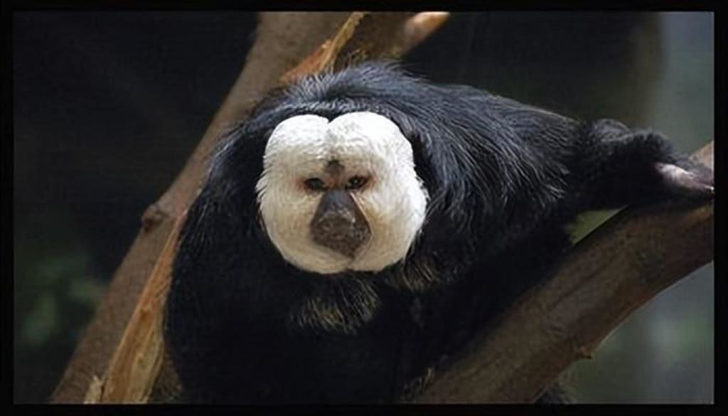 The monk-faced monkey is a type of monkey that lives in the Amazon rainforest. The monkey is ugly and resembles a monk-faced monkey, hence the name. When people first discovered monkeys, their populations were already small, and with climate change and human development, the monkeys' habitat was encroached upon and destroyed, leading to their extinction. For a long time afterward, scientists found no more traces of monkeys and decided that they were extinct creatures.