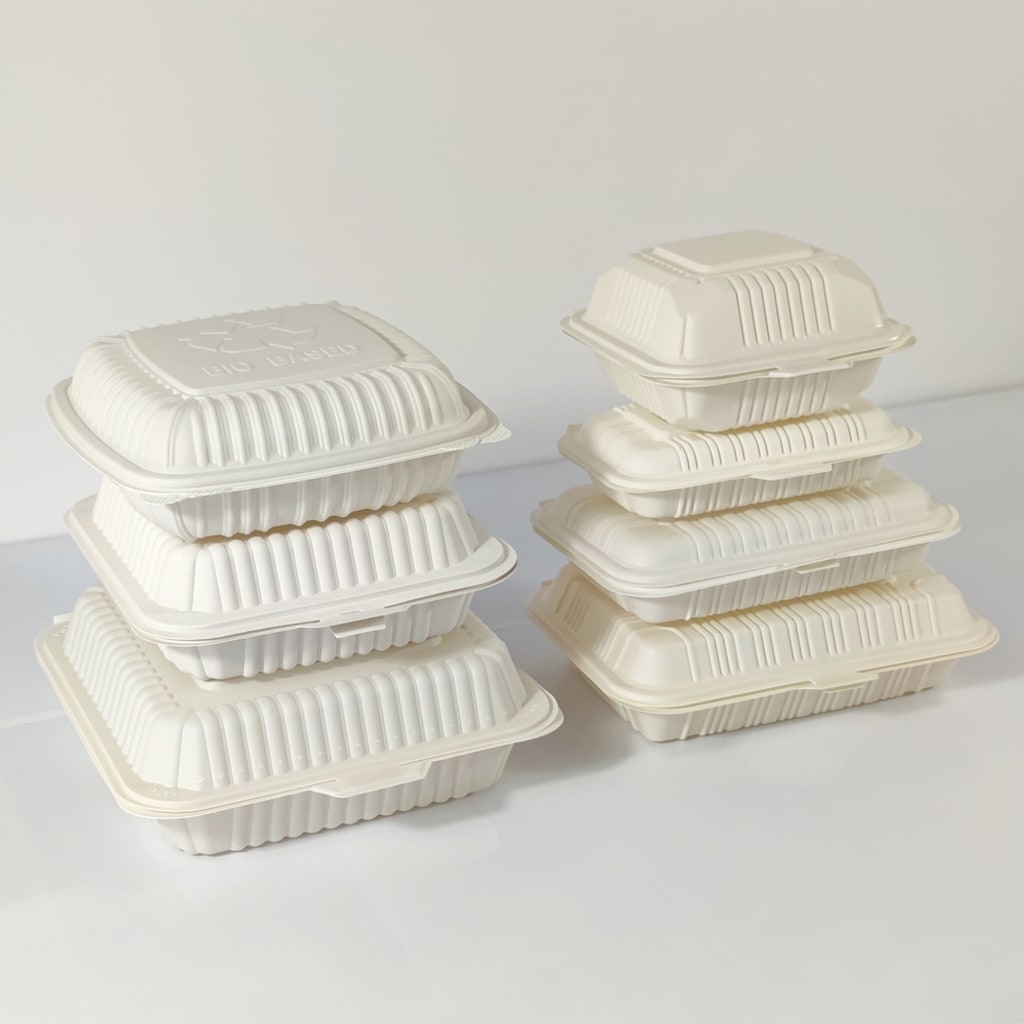 Made from renewable corn starch, cornstarch clamshell containers are sturdy, microwave-safe, and break down more quickly than petroleum-based plastics. Their natural look also aligns with today’s aesthetic preferences: clean, minimal, and sustainable.