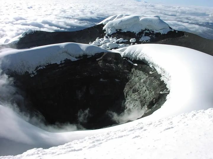 We move to the South American continent. In Ecuador, in the Cordillera Central range in the Andes, this beast is really tall, one of the tallest in the world — reaching 5897 m above sea level — and is called Cotopaxi.