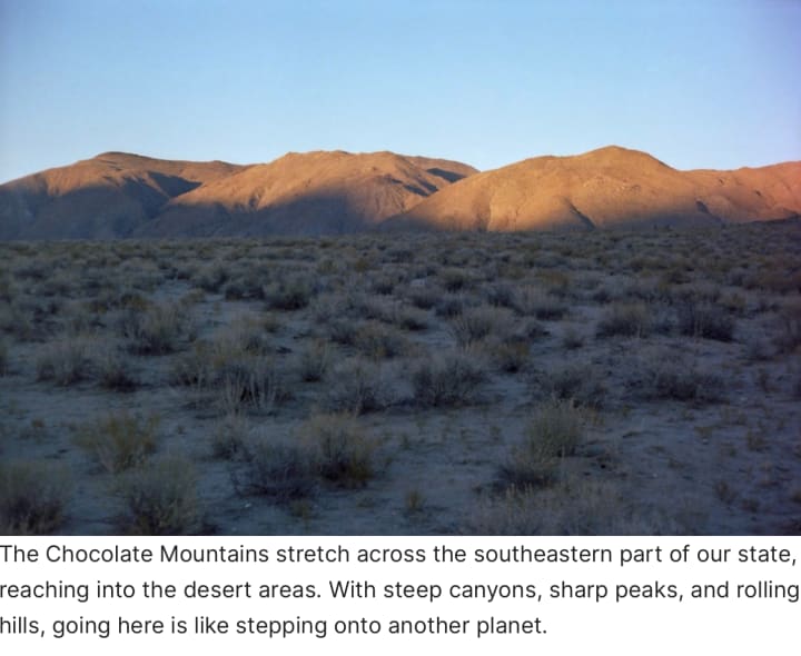 Getting to the Chocolate Mountains can be an adventure in itself. They’re located in a remote part of the desert. The best way to get there is by driving from nearby cities like Blythe or El Centro.