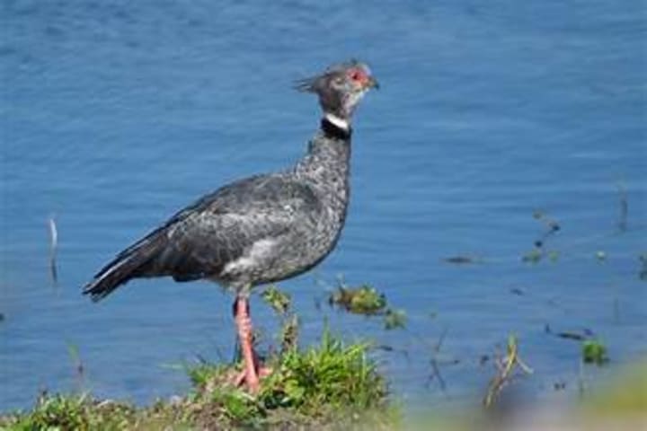 Southern screamers make their homes from Peru through the south of Brazil to Uruguay and northern Argentina. One hundred birds flock together, sounding off strident warning calls. They are not very beautiful birds with small heads and large bodies. Southern screamers are known for their large, long-toed webbed feet and can swim well. These birds are mainly vegetarian, subsisting on a diet of plants and seeds with occasional insects.
