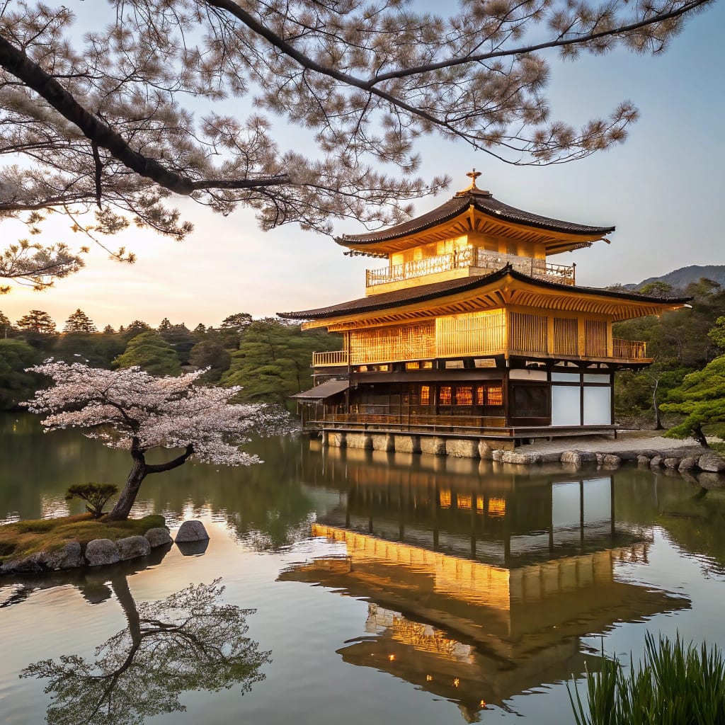 Kinkaku-ji, the Temple of the Golden Pavilion, is a Zen Buddhist masterpiece built in the 14th century. Its top two stories, covered in gold leaf, shimmer against a tranquil pond, embodying the Muromachi period’s aesthetic of wabi-sabi—beauty in imperfection. The structure blends three architectural styles: shinden (aristocratic), samurai, and Zen, reflecting Japan’s layered cultural history. The surrounding garden, designed to mirror paradise, invites contemplation. Kinkaku-ji’s serene beauty and philosophical depth make it a must-visit, offering insights into Zen’s influence on Japanese design and spirituality.