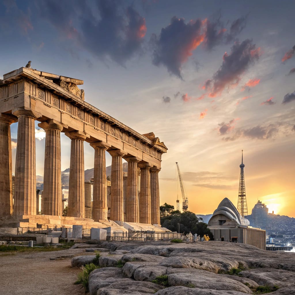 The Parthenon, built in the 5th century BCE atop the Acropolis, is a pinnacle of ancient Greek architecture. This Doric temple, dedicated to Athena, showcases mathematical precision with its golden ratio proportions and subtly curved columns, creating an illusion of perfection. Constructed from Pentelic marble, its friezes and sculptures embody classical ideals of balance and beauty. Despite centuries of wear, the Parthenon remains a symbol of democracy and artistic excellence, offering insights into Greece’s philosophical and architectural legacy that continue to inspire modern design.