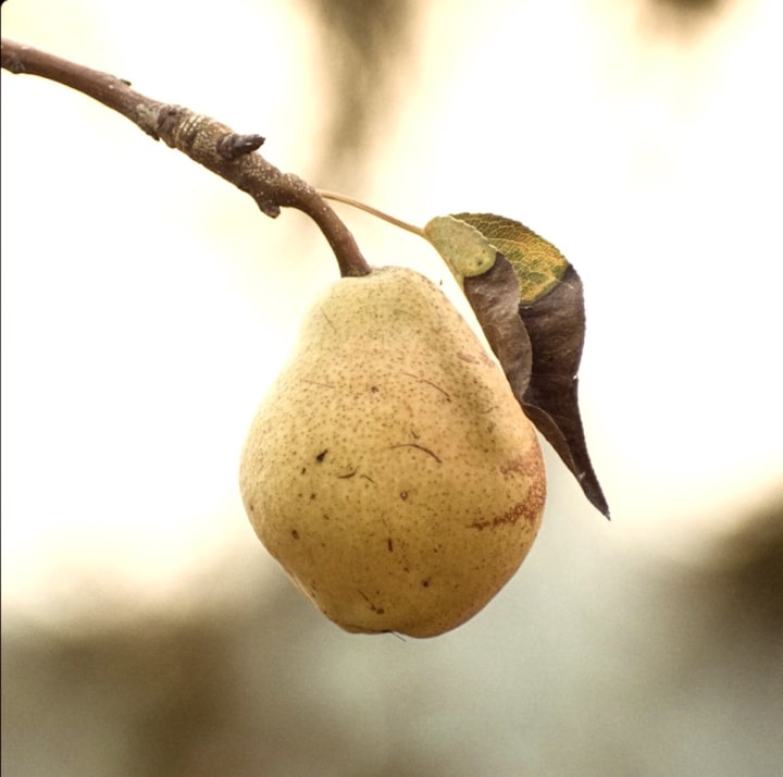 She stared at the last pear tree in California—perhaps the nation. Its leaves had wilted into a decaying brown, like all life on the ground of this withering planet. Still, the tree would provide today's nourishment... a single pear; a beacon that called her—a dangling promise that they would survive for another day.