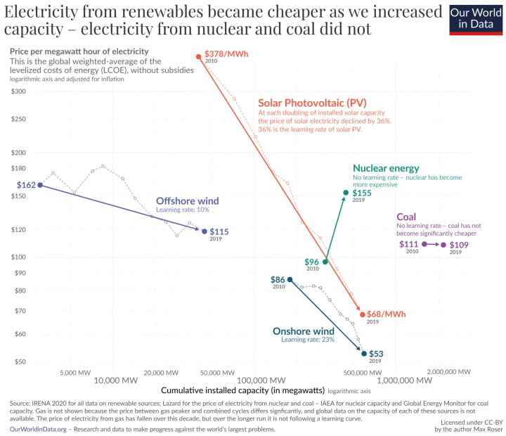Source: Our World in Data, “Why Did Renewables Become So Cheap So Fast?,” December 2020 (Used with permission)