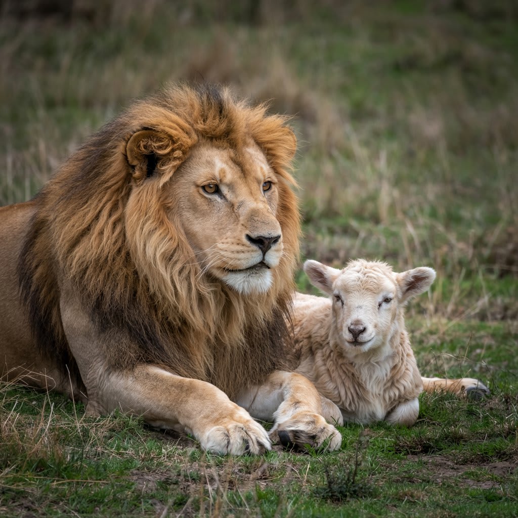 And so, the lion and the lamb, two creatures so different in nature, became the guardians of the jungle. Together, they proved that even in the wildest of places, strength and kindness could coexist, and that true leadership came not from dominance, but from a heart full of love.