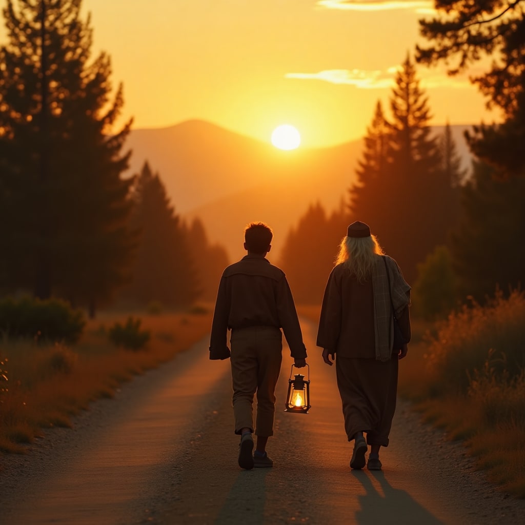 And so, the young traveler and the old man began their journey, the lantern swinging gently between them.