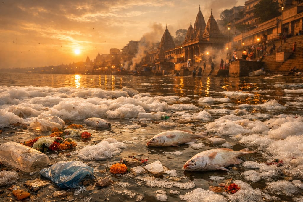I stood on the banks of the Ganges once, years ago, and the air itself felt alive with something ancient. Pilgrims chanted, lamps floated on the water, and for a moment you could almost believe the stories that this river was born from the heavens and could wash away any sin. But even then, beneath the beauty, I noticed the strange sheen on the surface, the smell that didn’t quite belong to nature. Today, that memory hurts. Because the river I saw is still there… only now it’s dying in plain sight, and we’re all pretending it isn’t.