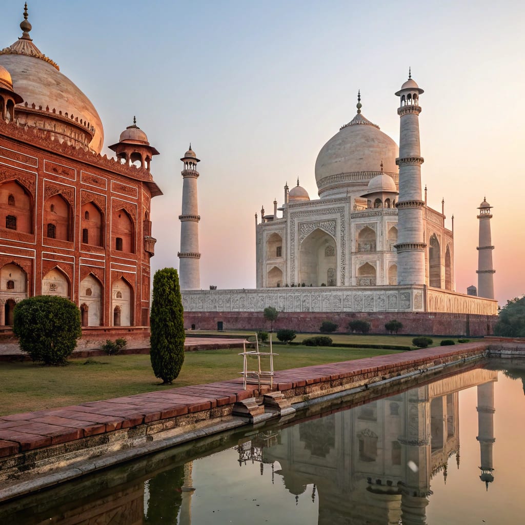 The Taj Mahal, a UNESCO World Heritage Site built in 1632 by Emperor Shah Jahan, is the pinnacle of Mughal architecture. This white marble mausoleum, dedicated to Mumtaz Mahal, blends Persian, Islamic, and Indian elements with its symmetrical domes, minarets, and intricate jali screens. The reflective pools and charbagh gardens enhance its ethereal beauty, symbolizing paradise. The Taj’s use of pietra dura inlays and Quranic calligraphy reflects unmatched craftsmanship. Visiting at dawn, when its marble glows, reveals a profound blend of love, artistry, and spiritual depth, making it a global icon.
